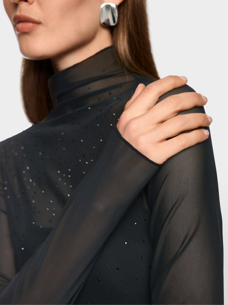 MarcCain Mesh Longsleeve met Hotfixsteentjes ā Zwart Art.nr.: ZC 48.15 J47 col. 900