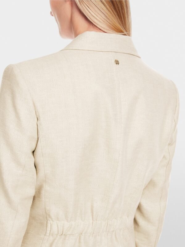 Deze MarcCain blazer (model YC3439W42) in de elegante kleur Deep Stone (6007) is een stijlvolle en moderne toevoeging aan je garderobe. De blazer heeft een nauwsluitende pasvorm, geaccentueerd door coupenaden en een elastische achterkant voor extra comfort.