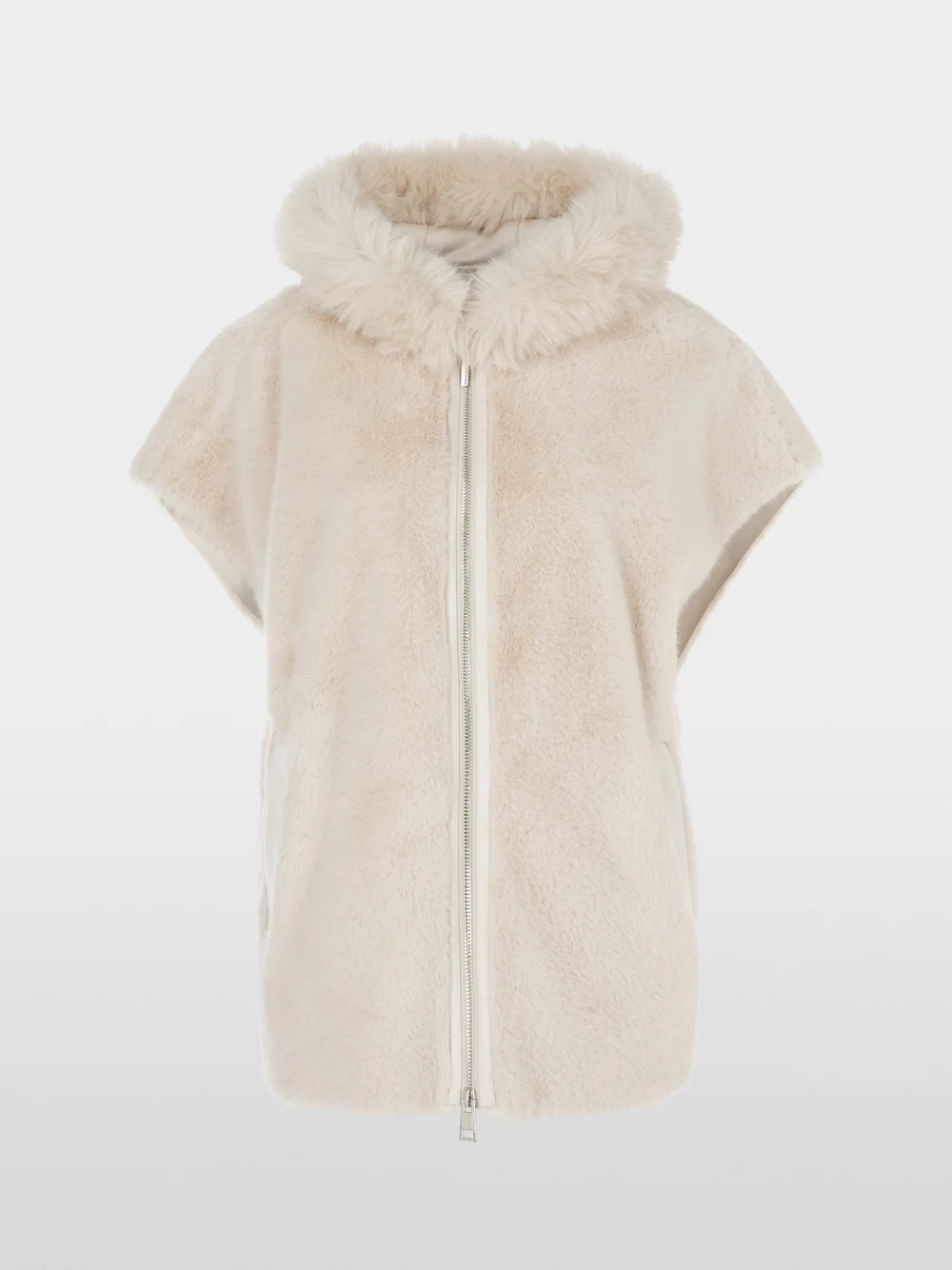 MarcCain Oversized Vest met Capuchon van Leuk Bont in de Kleur Smoke XC3705W80