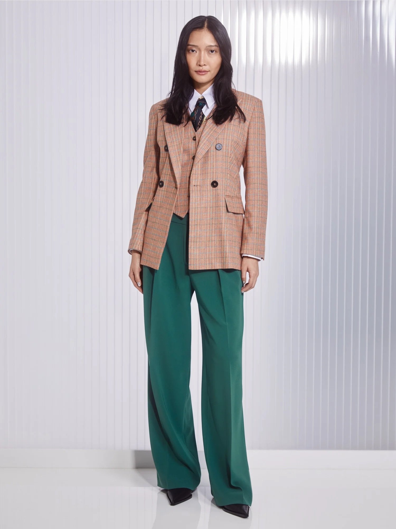 Deze broek is ontworpen met een hoge taille en een wijde fit, wat zorgt voor een modieuze en toch comfortabele pasvorm. De beenlengte van 34″ maakt hem geschikt voor langere benen, terwijl de Wichita-broek perfect te combineren is met zowel hakken als platte schoenen. Het model is 179 cm lang en draagt maat N3 / 38. Verkrijgbare maten zijn:
