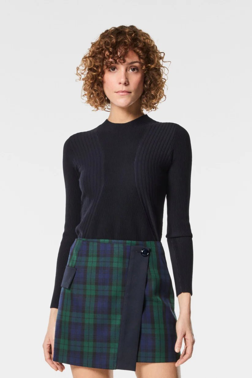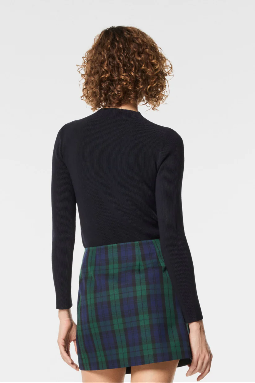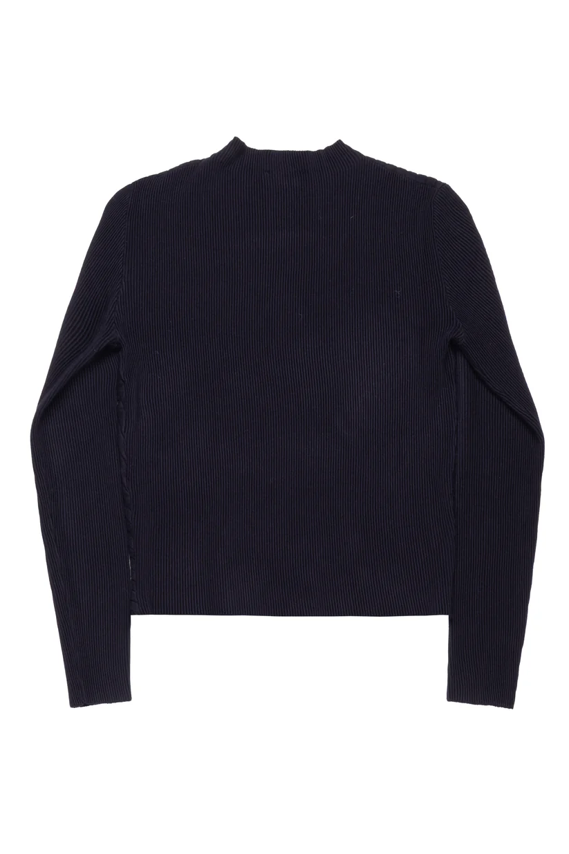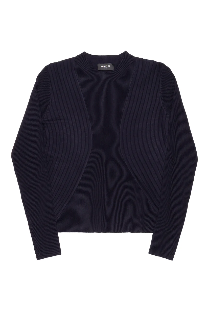 De Nenette trui in donkerblauw is een elegante basic met een aansluitende pasvorm die de vrouwelijke lijnen subtiel accentueert. Uitgevoerd met een ronde hals en lange mouwen met ribstructuur in hoog-laag effect, wat zorgt voor een verfijnde en moderne uitstraling.