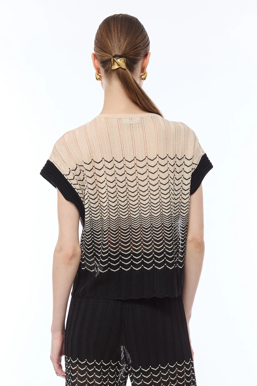 Lichtgewicht gebreide trui, Soepele, vloeiende pasvorm, Elegante boothals, Korte kimonomouwen, Golvende perforatie met subtiel kleurverloop