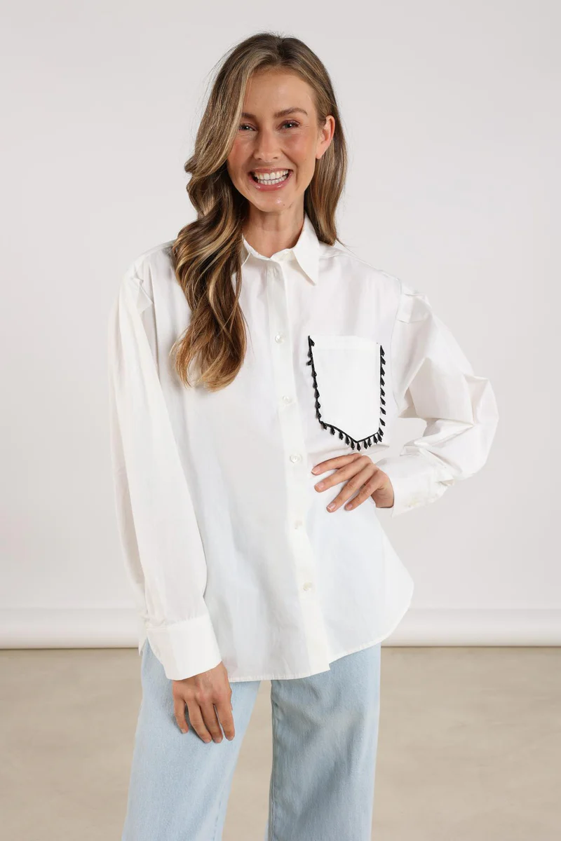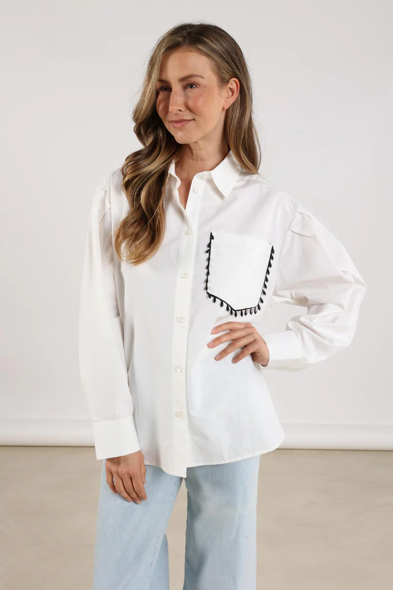 Het subtiele borduursel op de borstzak voegt een verfijnd detail toe, waardoor de blouse net dat beetje extra krijgt. Perfect te combineren met jeans voor een casual look, of met een pantalon voor een meer geklede stijl ā een veelzijdig item dat je het hele jaar door kunt dragen.