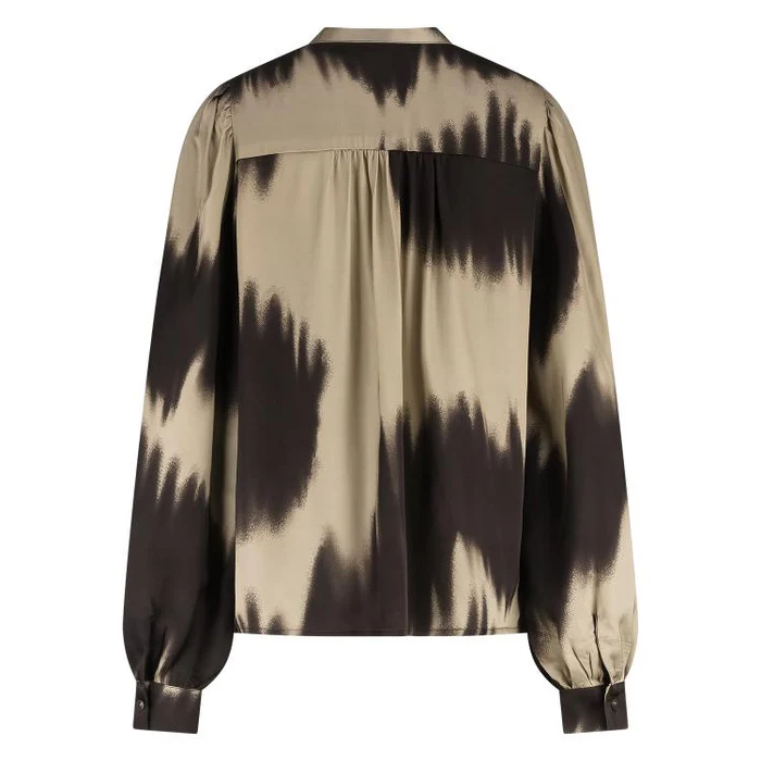 De Nukus Lizzy blouse in sand/dark chocolate is een echte musthave voor wie houdt van stijl met een moderne twist. De blouse is uitgevoerd in een vrouwelijke all-over print en heeft een klassieke knoopsluiting, waardoor hij zowel elegant als veelzijdig te dragen is.