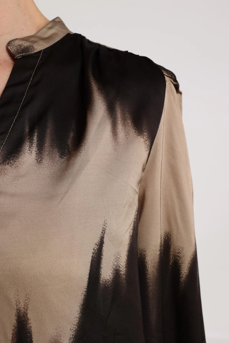 Nukus Lizzy Blouse ā Sand/Dark Chocolate (Model NKF02074)