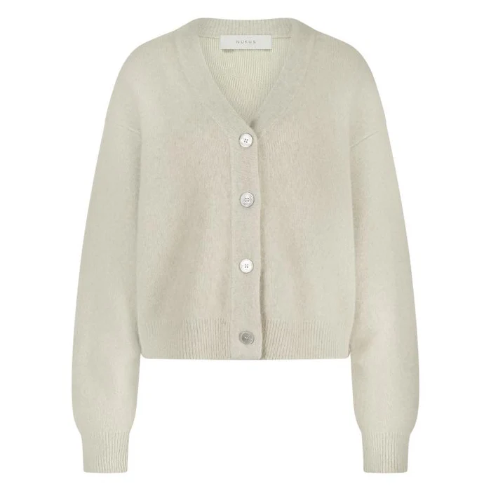 De Nukus Magda cardigan in Off White is een elegante essential die niet mag ontbreken in je garderobe. Dankzij de zachte wolmix biedt dit vest warmte en comfort, terwijl de klassieke knoopsluiting zorgt voor een tijdloze uitstraling.