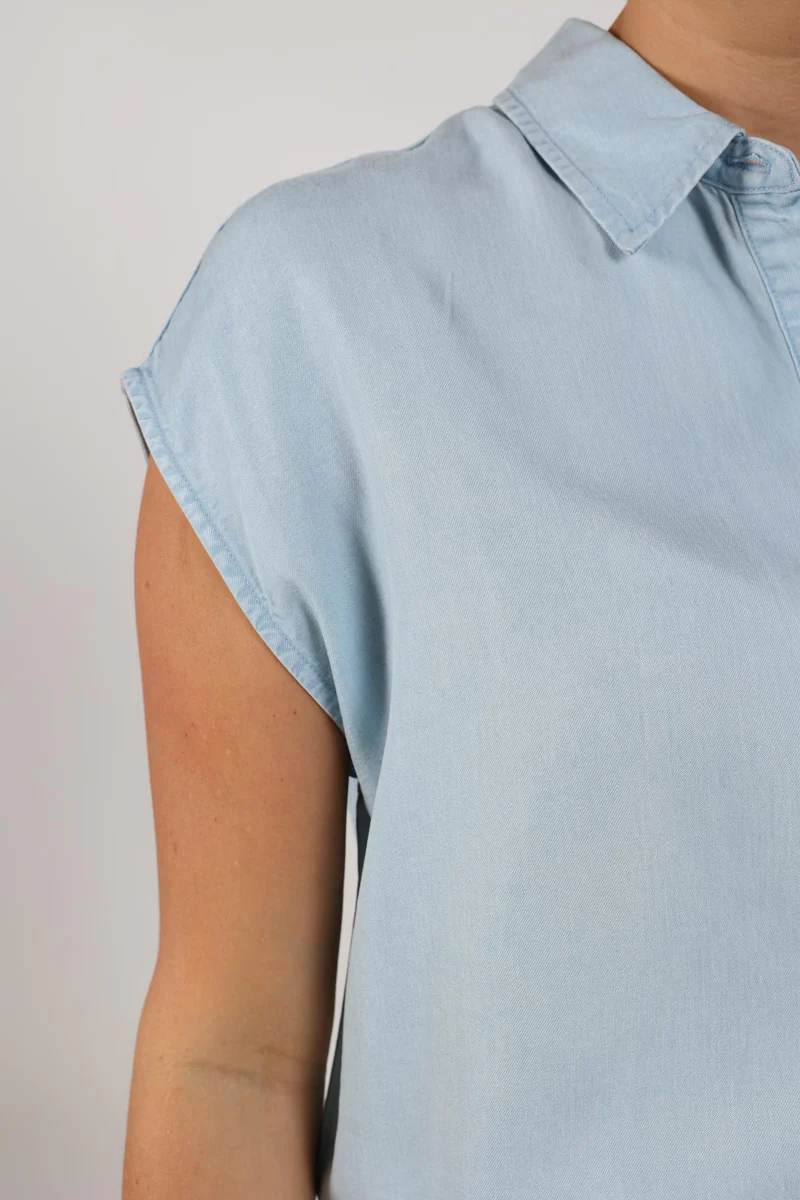 De top is gemaakt van 100% Tencel, een heerlijk zachte en ademende stof die prettig aanvoelt op de huid. De knoopjes aan de voorkant geven het ontwerp een subtiel en verfijnd detail. Dankzij de minimalistische stijl is de top gemakkelijk te combineren voor zowel een casual als een meer geklede look.