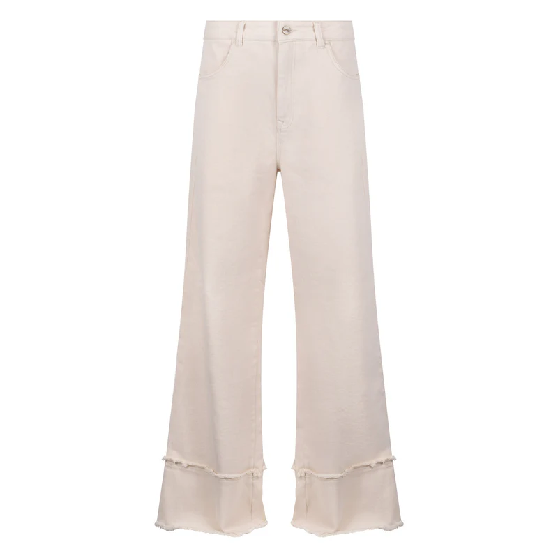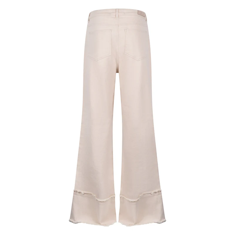 De Nukus Shay Pants Ruffle is een stijlvolle offwhite jeans met een moderne wide leg pasvorm. Het klassieke five pocket model geeft de broek een tijdloze uitstraling, terwijl de lichte stretch van 1% elastaan zorgt voor een comfortabele en soepele fit.