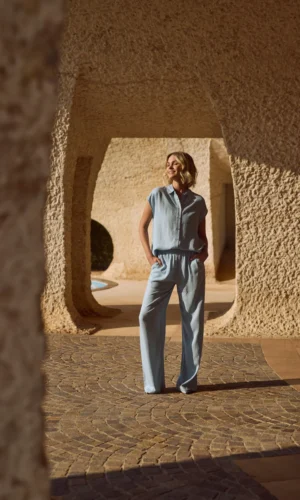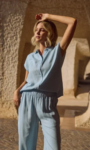 De top heeft een op maat vallende pasvorm die mooi aansluit zonder strak te zitten, waardoor hij zowel comfortabel als flatterend is. De boord aan de onderkant zorgt ervoor dat de top licht kan blousen, waardoor een speels en elegant effect ontstaat. Perfect te combineren met zowel broeken als rokken voor een stijlvolle, casual of feestelijke outfit.