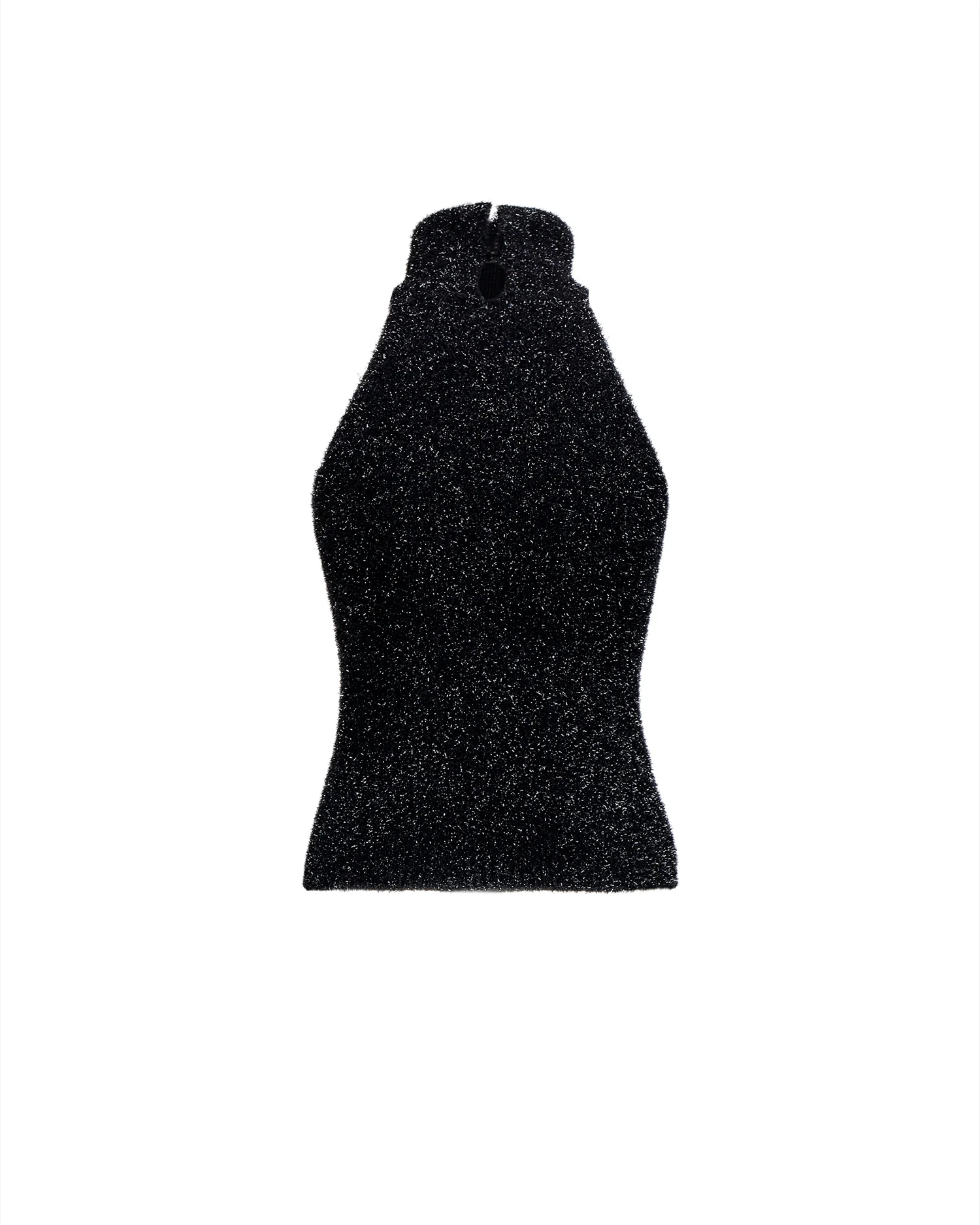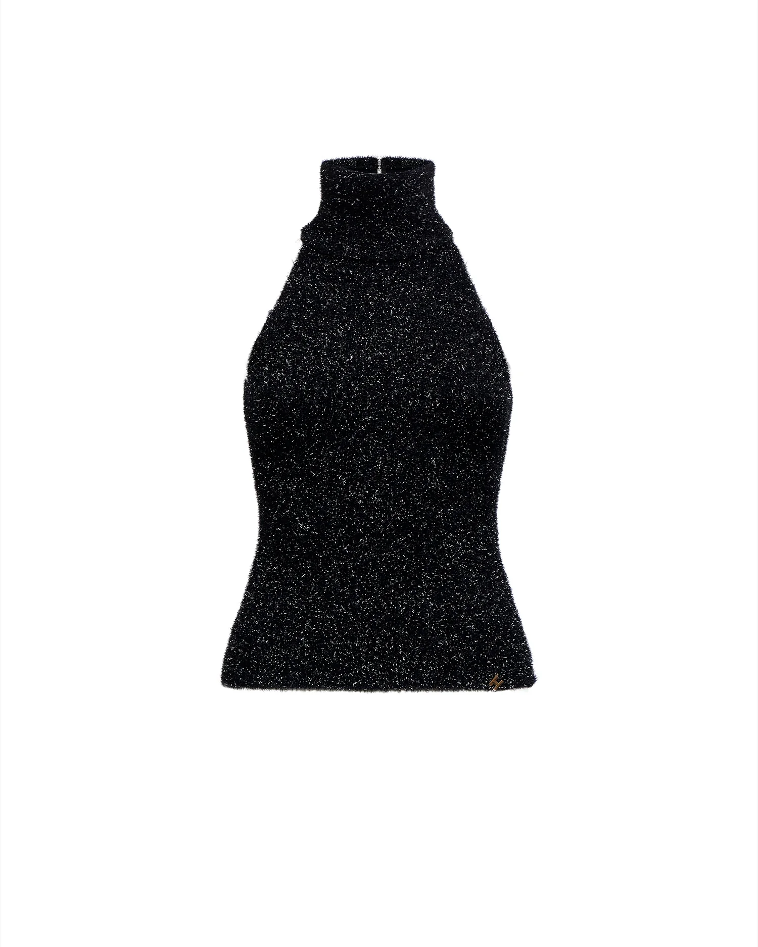 Silvian Heach High Neck Lurex Top GPA25204LU Zwart