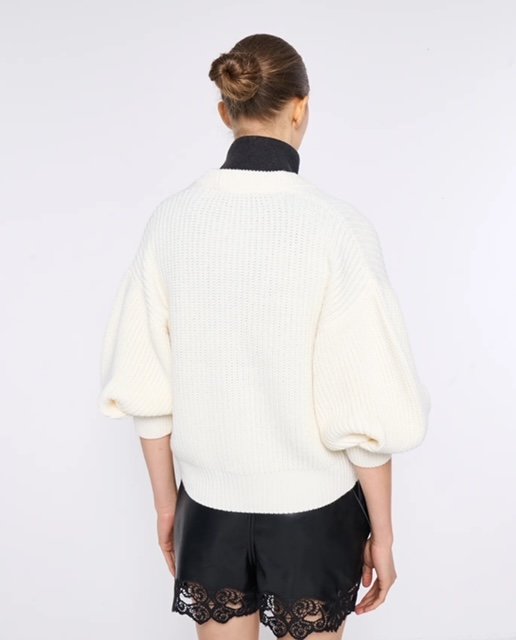 Het vest is ontworpen met een V-hals en een sluiting met knopen aan de voorkant, wat het een klassiek en tijdloos silhouet geeft. De wijde mouwen voegen een eigentijdse twist toe, waardoor dit vest een echte eyecatcher is. De warme milk/ecru kleur zorgt voor een zachte, veelzijdige uitstraling die gemakkelijk te combineren is met diverse kleuren en stijlen.