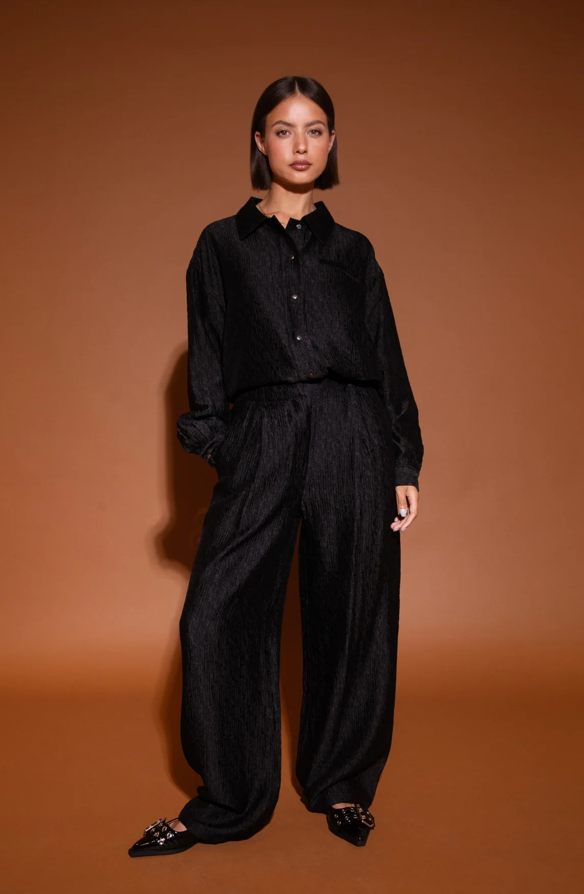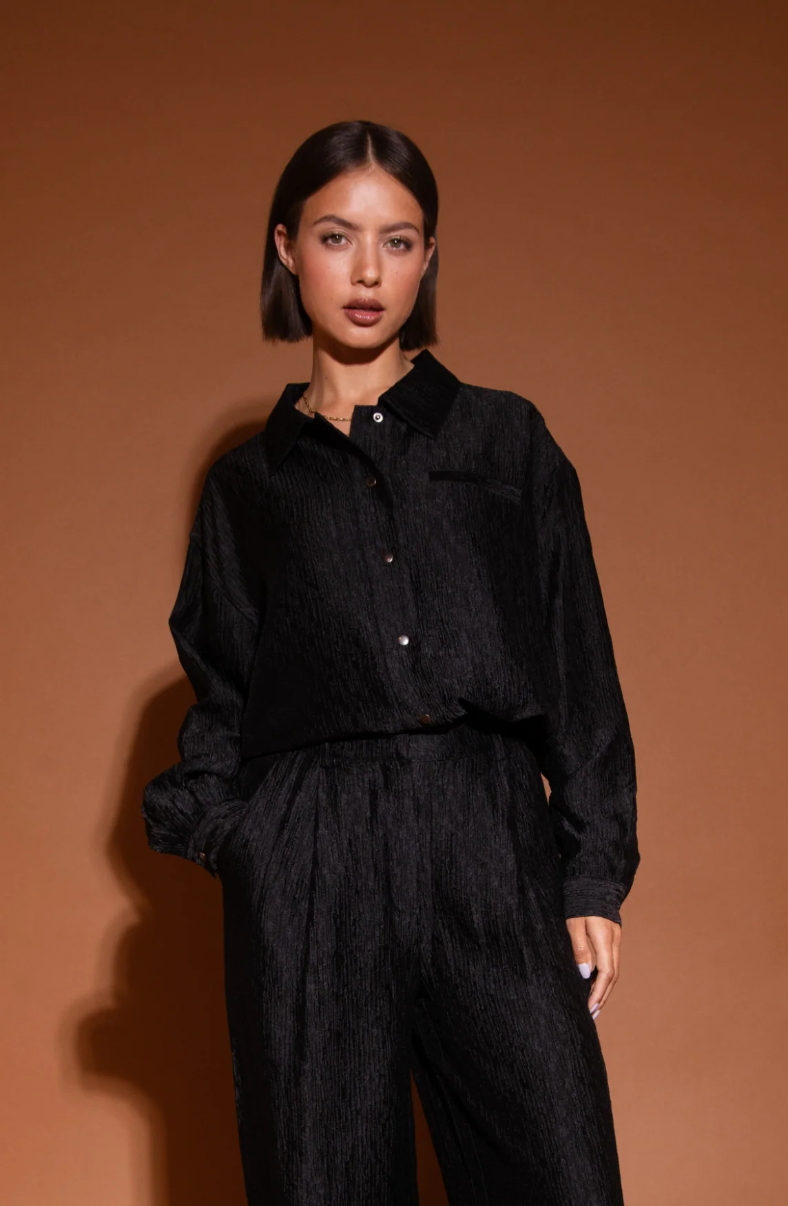 De Filipa Blouse is een tijdloze zwarte blouse met een elegante en veelzijdige uitstraling. Dankzij de subtiele reliƫfstructuur in de stof krijgt de blouse nƩt dat beetje extra detail. De blouse kan zowel los gedragen worden als over een topje als een licht jasje, waardoor hij perfect is voor diverse outfits. Aan de voorkant sluit de blouse met drukknopen, wat een moderne twist geeft aan dit klassieke item.