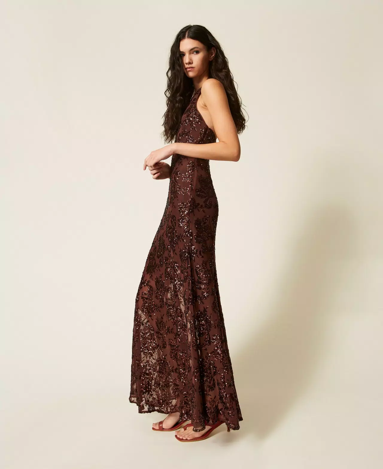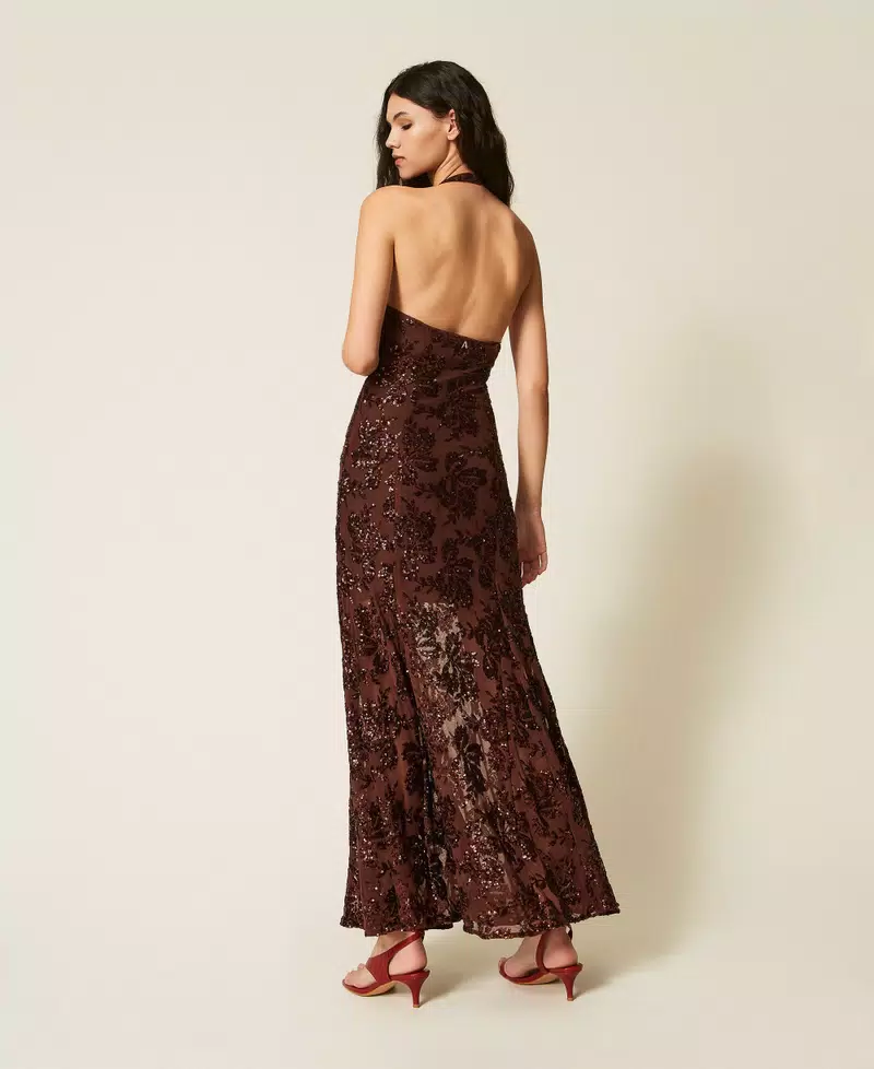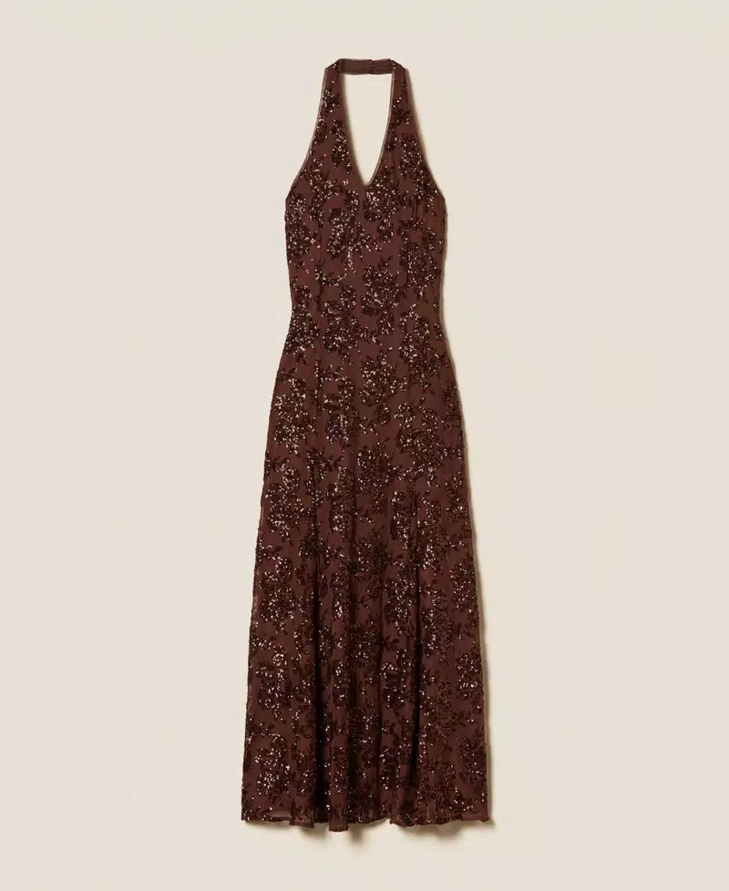 Twinset Long Tulle Jurk Sequins 261AT2145 Bitter Chocolate