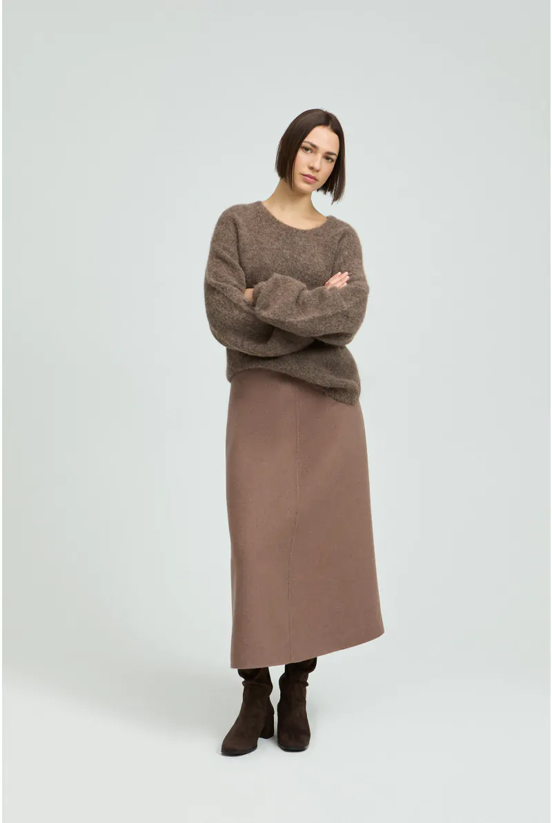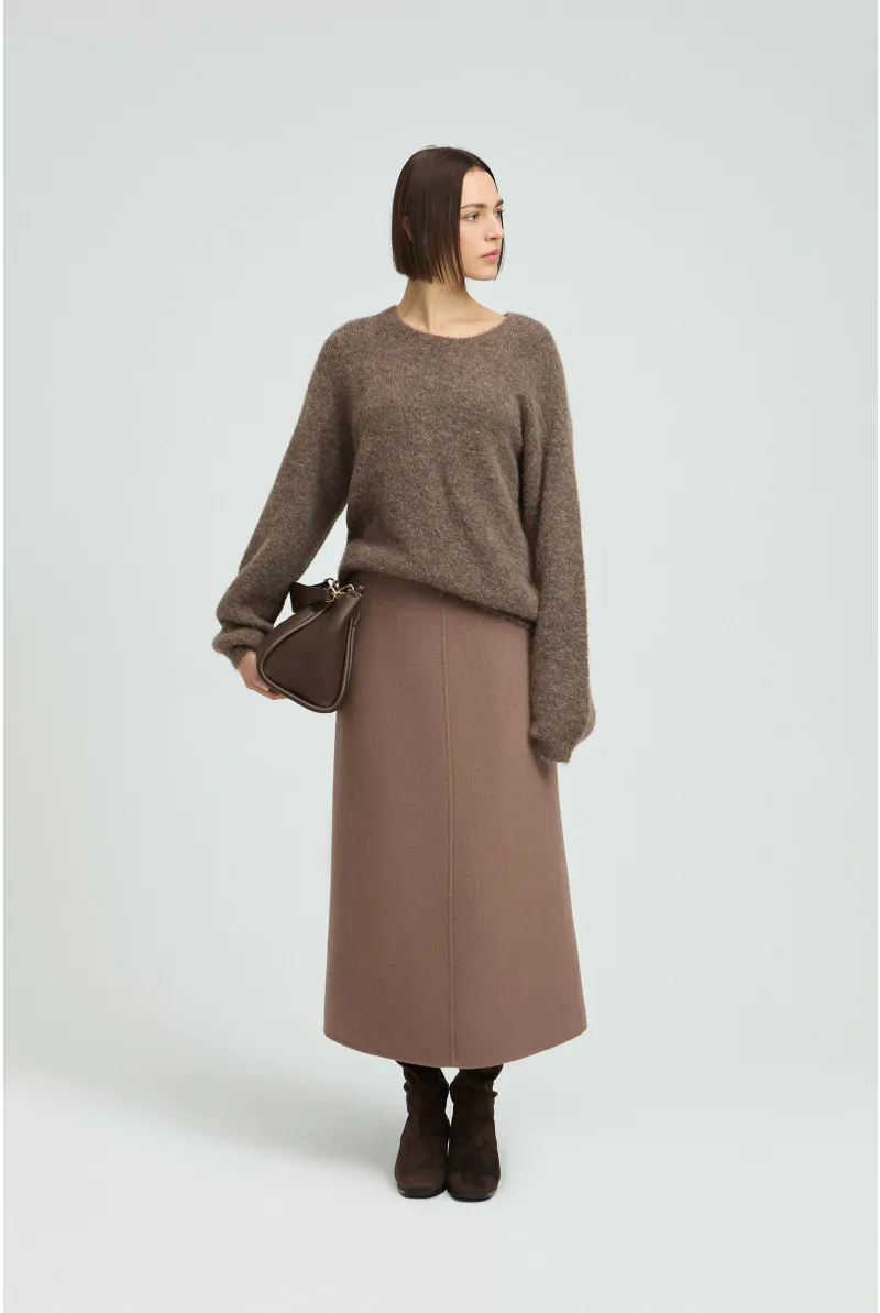 De trui heeft een losse fit die zorgt voor een ontspannen, flatterende pasvorm en ultiem draagcomfort. De ronde halslijn geeft het geheel een tijdloze uitstraling, terwijl de warme wolmix met alpaca zorgt voor een luxe, zachte feel.